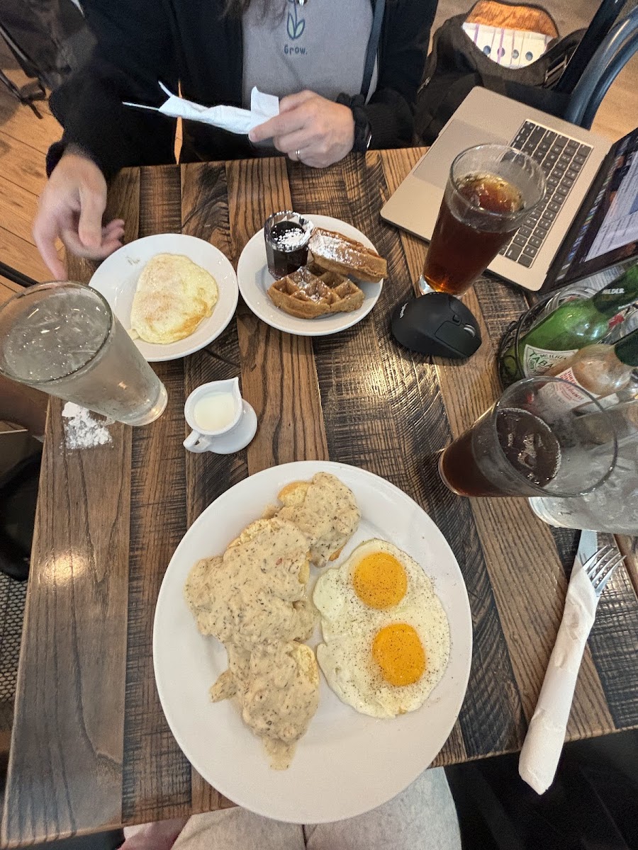 I'd been meandering PDX for a few hours given an interminably long flight delay before a redeye. Looking for something simple, stopped by Screen Door. (I'd been to their Eastside location many years ago and will vouch for their awesome fries and waffles.) My server, Ashley could not have been nicer, warm and assured me it was more than okay to order scrambled eggs. They hit the spot and given the flight was delayed even longer I inquired if I could get a cup of tea. She returned with a presentation worthy of a pricey tea shop. Thank you Screen Door for accomodating me and especially Ashley who made my day so much better!