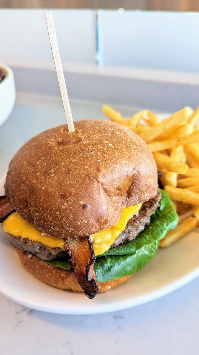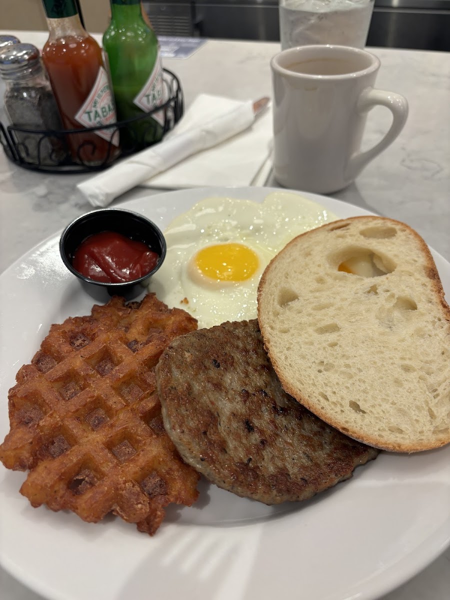 Breakfast burger is pretty good. Fried fish is plain and all flavor comes from the tartar sauce. Waffle chicken is good but not very impressive. The chicken tastes like those in KFC. However, it’s still a good option for breakfast in the airport considering almost everything priced double while this restaurant keeps the price here the same as at the other locations.